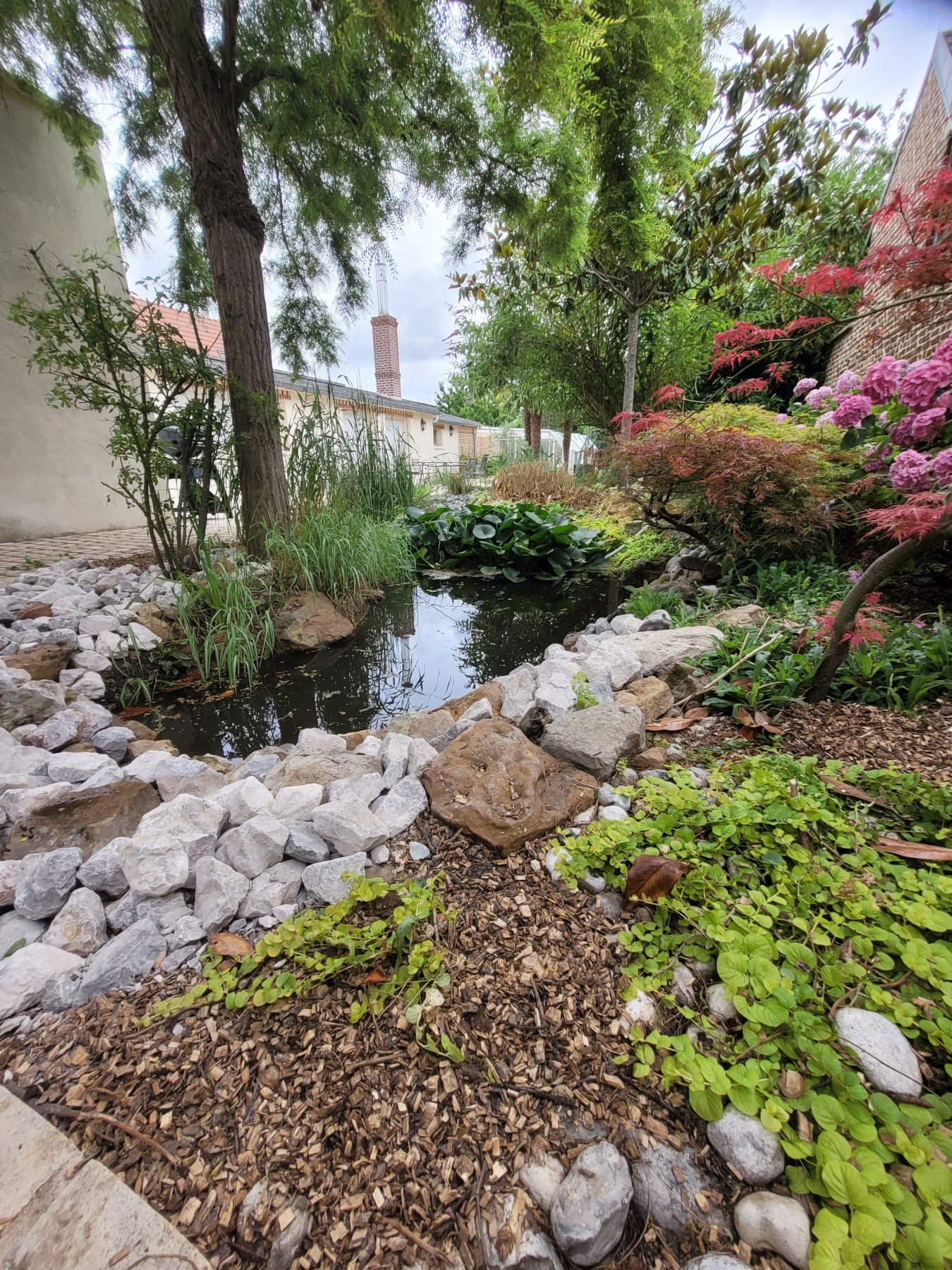 Lors de se chantier, nous avons du nettoyer un bassin dont la nature avait repris ses droits,